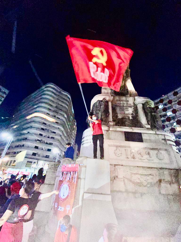 Na Praça do Derby, em Recife, o presidente estadual do PCdoB-PE, Marcelino Granja subiu no poste para hastear a bandeira do PCdoB no ponto mais alto do ato. A jornada do #24JForaBolsonaro acontece em várias cidades do estado.