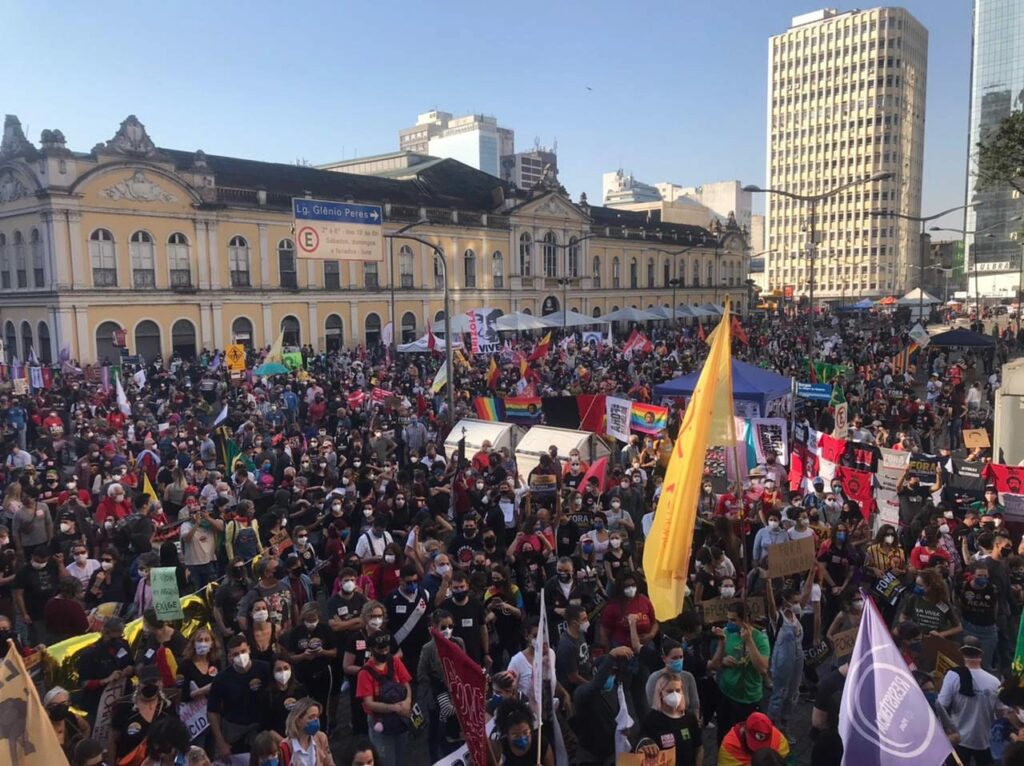 E retornaram ao centro de Porto Alegre, juntamente com outros milhares de pessoas, para pedir o impeachment de Bolsonaro. A manifestação lotou o Largo Glênio Peres e percorreu as ruas do centro, terminando no Largo Zumbi dos Palmares.