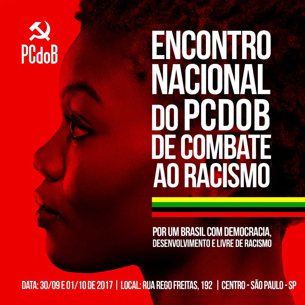 A secretaria nacional do PCdoB de Combate ao Racismo realizará de 30 de setembro a 1º de outubro deste ano, em São Paulo, o 2º Encontro Nacional de Combate ao Racismo e à Intolerância que abordará o tema “Avançar na luta pela Democracia, pelo Desenvolvimento e por um Brasil sem Racismo”. Estão convidados a participar toda a militância e dirigentes da frente antirracista.