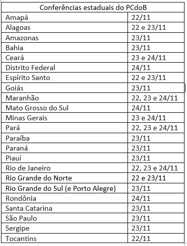 Os militantes comunistas chegam neste final de semana à reta final das conferências partidárias, que vem sendo realizadas pelo PCdoB nos municípios e estados desde outubro. A maior parte das conferências estaduais do PCdoB será realizada entre a sexta-feira (22) e o domingo (24), último dia para a realização.