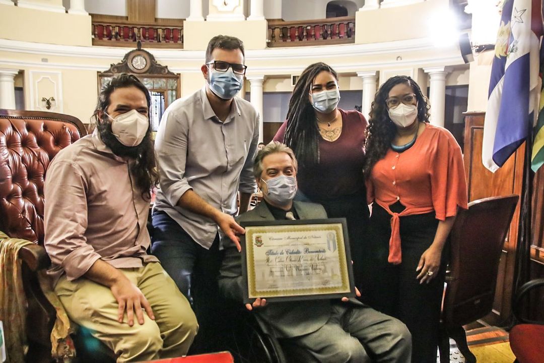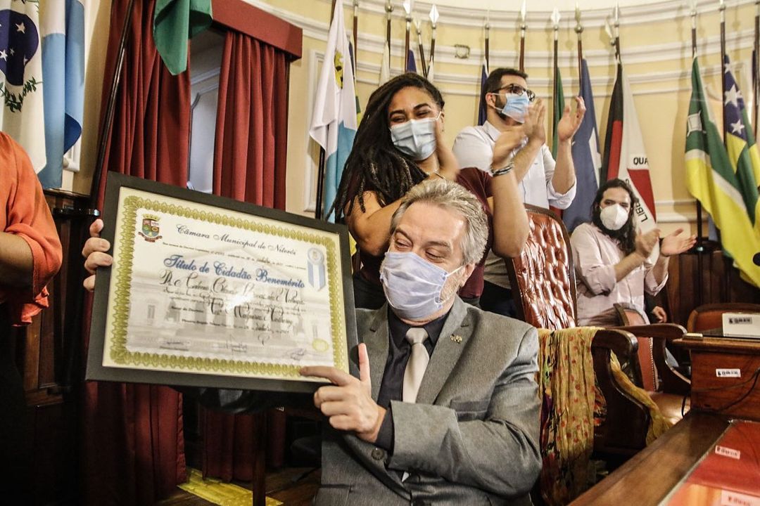 Por iniciativa da vereadora do PCdoB, Walkíria Nictheroy, a Universidade Federal Fluminense (UFF), foi homenageada na noite desta terça-feira (26), na Câmara Municipal de Niterói, no Rio de Janeiro, em virtude da atuação relevante que a instituição está desempenhando frente ao combate à Covid-19. Durante a sessão solene o Título de Cidadão Benemérito foi entregue ao reitor Antonio Cláudio Lucas da Nóbrega. Vinte moções de aplausos também foram entregues a distintos colaboradores de diversos segmentos da UFF, entre professores, estudantes e profissionais.