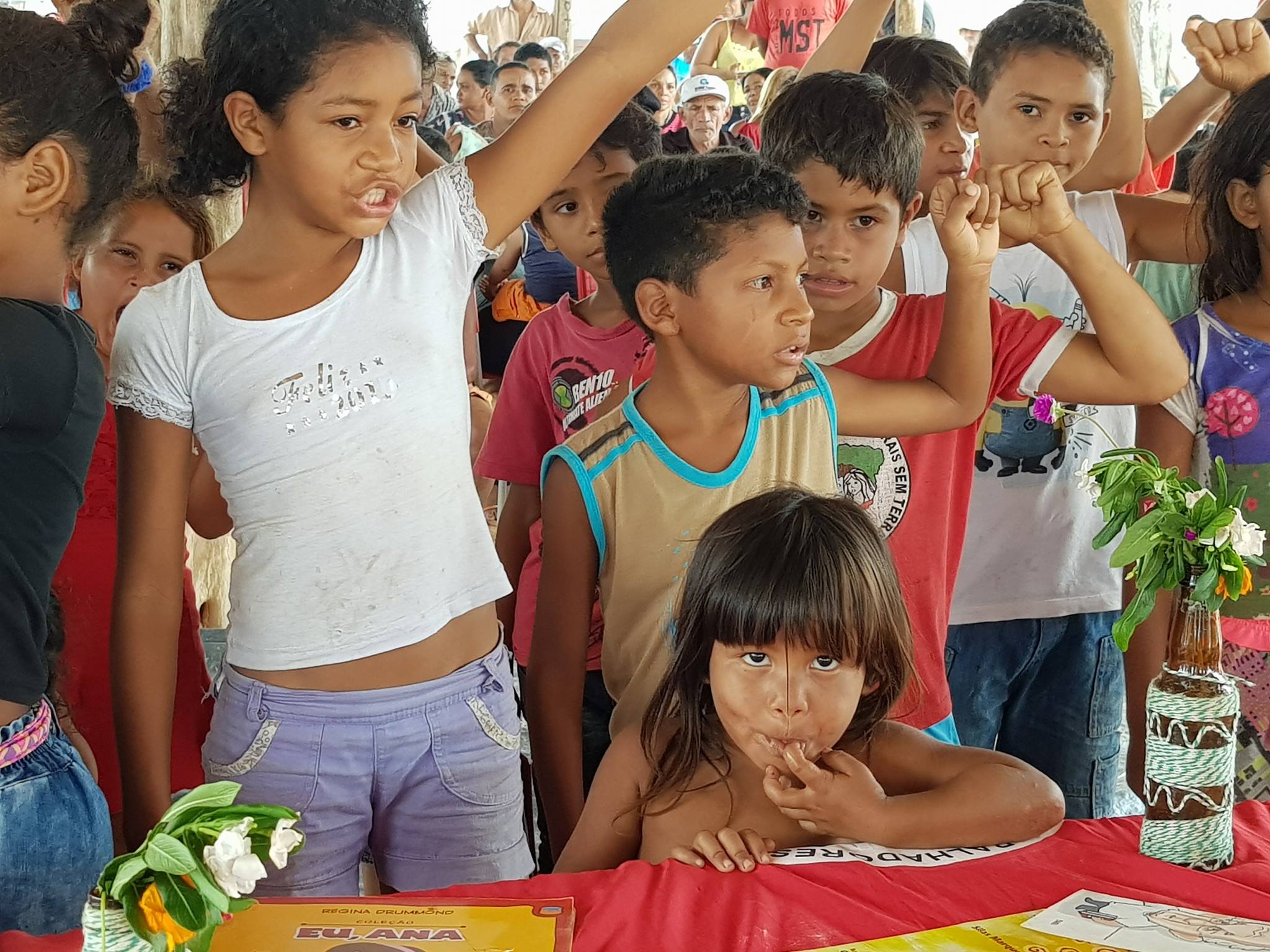 Mais tarde, Manuela faz uma visita ao acampamento Hugo Chaves do MST em Marabá – Pará, terra da Guerrilha do Araguaia de onde os latifundiários querem a desapropriação de 300 famílias, sendo mais de 150 crianças. “Mais do que nunca a luta pela terra é necessária. Pela Reforma Agrária!”