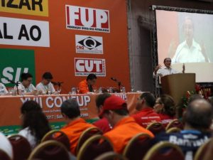 O ex-presidente do PCdoB, Renato Rabelo participou da mesa de debates, sobre a atual conjuntura política e econômica, no 17º Congresso, Federação Única dos Petroleiros (FUP), em Salvador , na última sexta-feira (4). Os coordenadores do Movimento dos Trabalhadores Rurais Sem Terra e do Movimento dos Trabalhadores Sem Teto, João Pedro Stédile e Guilherme Boulos também participaram da mesa. Na ocasião, Renato teve a oportunidade de desenhar alguns traços que considera importantes da atual situação nacional.