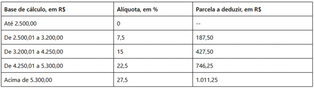 Projeção da Tabela do Imposto de Renda Pessoa Física