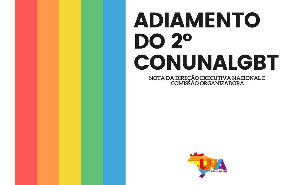 A Direção Executiva Nacional da União Nacional de Lésbicas, Gays, Bissexuais, Travestis e Transsexuais – UNALGBT e a comissão organizadora do 2º Congresso Nacional da UNALGBT – CONUNALGBT comunicaram nesta segunda-feira (16) o adiamento do encontro que estava previsto para os dias 27 a 29 de março em Salvador.