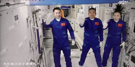 Já estão no módulo central Tianhe da estação espacial chinesa os três astronautas – ‘taikonautas’, como preferem os chin...