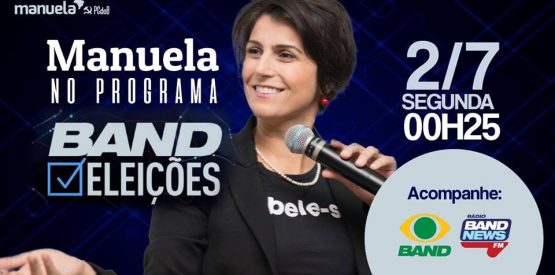 Manuela participa do programa Band Eleições na segunda-feira, 2