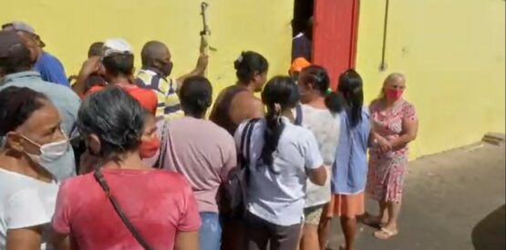 Moradores dormem na 'fila de ossinhos' por cesta básica em Cuiabá...