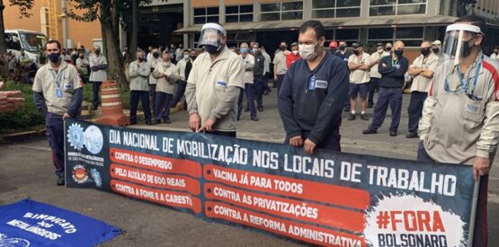 As centrais sindicais realizaram protestos nos locais de trabalho em denúncia ao descaso do governo Bolsonaro que tem co...