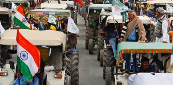 A pé e de trator, milhares de agricultores indianos protestaram na terça-feira (26) em Nova Délhi, Índia, em pleno ‘Dia ...