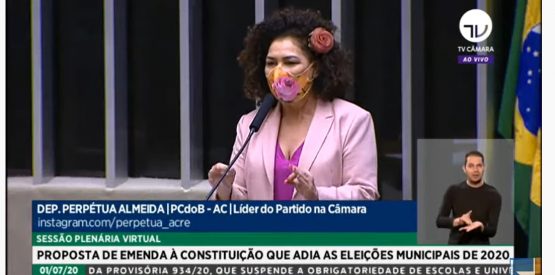 Nesta quarta-feira (1º), a líder do PCdoB na Câmara, deputada Perpétua Almeida (AC) defendeu, em suas redes sociais, a m...